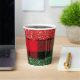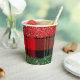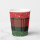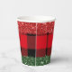 Celebrate the holiday season with these festive paper cups. They feature a red and green plaid pattern with red and green faux glitter bands.