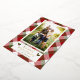 Send out festive cheer with this holiday photo card that features a Christmas plaid pattern in red, green and white, with holly leaves and berries and gold foil embellishments. Personalise with your favourite photo, editable greeting and sign-off.