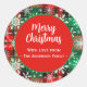 Christmas sticker featuring plaid Christmas colours overlaid with a snowflake pattern and a solid red circle in the middle for the text. The text on the tag can be customised with your own.