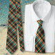 Plaid tie with blue-green and orange colours. A smaller pattern of intersecting stripes of colour create visual interest and charming combinations of dark and light in this design.