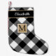Plaid Black and White Buffalo Check Monogram Small Christmas Stocking