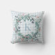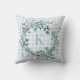 Plaid Blue Monogram Greenery Christmas Wreath Cushion