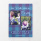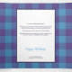 A chic rustic country design in blue and purple plaid is the background for your 4 photo tri-fold Christmas cards. A two photo collage on the front, bordered in deep purple, is surrounded by light blue lettering in mixed fonts with a hint of a dark purple drop shadow and CHRISTMAS can be edited to HOLIDAY if you like. Add your name to the bottom in pale blue text then unfold this luxury trifold holiday card to reveal the same purple and blue buffalo check pattern with two more pictures inside. There is room in the middle for a mini Christmas letter in a dark plum font so you can update your family and friends on the highlights of the past year. Create your own tri fold multi photo Christmas cards with this country rustic template design in blue and purple plaid.