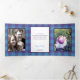 Plaid Blue Purple Chic Rustic Country 4 Photo Tri-Fold Holiday Card