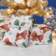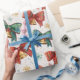 Plaid in winter reds, blues, and greens always signifies the Christmas season to us. We think you may feel that way, too. Here, the bright hues are worked into cute holiday bows and attached to charming gold bells. Colourful snowy elements look cheery and bits of holly and some berries add to the fun of the retro weathered watercolor patterns. All making for lovely holiday wrapping paper just right for this season.