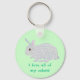 Cute colourful line drawing of a happy bunny rabbit in plaid, known as Plaid Bunny, printed on keychains. Plaid Bunny says, "I love all of my colours!