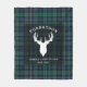 Family Name, location, and year established Robertson Clan purple green plaid with deer head silhouette Fleece Blanket