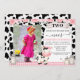 Modern have you heard the news cow themed birthday featuring a cute cow, black and white cowhide pattern, lovely pink floral arrangements, pink plaid pattern and a wooden banner. Your little girl's photo appears on the left hand side of the design and an arched frame is used as a background for the text. This cow themed birthday invitation design is a cute way to set the scene for a cow themed birthday party for a little girl.