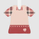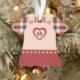Plaid dress with pink and red pinafore, features heart shaped buttons, lace around the hem, and a large heart design in front, showcasing your loved one's monogram and name. On the back is a small heart "tattoo" in matching pink and red, with the wording, "Christmas 20xx". Personalise with the current year.