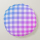 Plaid Gingham Pink Blue Modern Simple Check Round Cushion