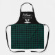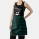 Personalise apron with seamless green and black plaid buffalo check, Kitchen Tools Icon along with custom name +Text. Perfect as a birthday gift or holiday.