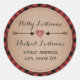 A wedding address sticker featuring an illustration of a red heart between two arrows. Background is card stock inspired over red and black plaid. Personalise the text with your names and address.
