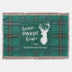 Cute home sweet home Christmas throw blanket you can easily customise by clicking the "Personalise" button, Featuring deer silhouette and clan Henderson tartan in green and gold chequered design.