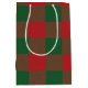 Red and Green medium plaid Christmas gift bag with red and green stirpes.