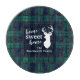 Cute home sweet home Christmas cutting board you can easily customise by clicking the "Personalise" button, Featuring deer silhouette and clan Blackwatch tartan in green and blue chequered design.