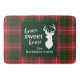 Cute home sweet home Christmas bath mat you can easily customise by clicking the "Personalise" button, Featuring deer silhouette and clan MacKinnon tartan in red, green check. Perfect for your Christmas decor during the holidays. Makes a great housewarming gift