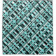 This shower curtain features a modern twist on plaid in shades of aqua, teal, black and white.