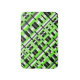 This bath mat features a modern twist on plaid in shades of lime green, grey, black and white.