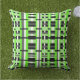 A modern twist on plaid in shades of lime green, grey, black and white.