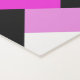 This yoga mat features a modern twist on plaid in shades of pink, grey, black and white.