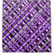 This shower curtain features a modern twist on plaid in shades of purple, lavender, grey, black and white.