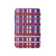 This bath mat sports a modern twist on a traditional plaid in a patriotic mix of red, white and blue.