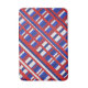 This bath mat sports a modern twist on a traditional plaid in a patriotic mix of red, white and blue.