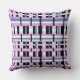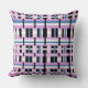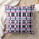 This pillow features a modern twist on plaid in shades of orchid, slate blue and black and white.