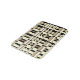 This bath mat features a modern twist on plaid in taupe, tan, black, and white.