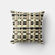 This pillow features a modern twist on plaid in taupe, tan, black, and white.