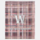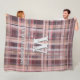 Plaid initial script red blush burgundy peach pink fleece blanket