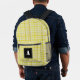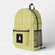 Plaid Pattern Gingham Check Yellow White Monogram Printed Backpack