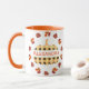 Fall mug with design featuring a plaid pumpkin surrounded by fall leaves with a name running through the pumpkin. This mug can be personalised with your own name.