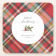Plaid Red Check Rustic Merry Christmas Farmhouse Square Paper Coaster