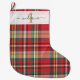 Plaid Red Pattern Monogram Christmas Holidays Large Christmas Stocking
