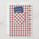 A fun design for a masculine party! The front of the invitation features a shirt-front of red and blue plaid against a white background complete with buttons. In the breast pocket is an invitation that reads "join us to celebrate".