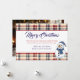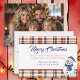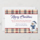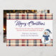 A pretty Christmas card with a cute snowman with a plaid scarf in burgundy and blue. On the back you can add your family photo in the personalize area. The front has a really sweet holiday quote about hot cocoa and Christmas magic.