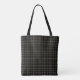 This tote is designed with a plaid background in shades of black and taupe, and can be customised with a monogram or initial of your choice! Makes a great tote for school, crafts, work, or for anyone that loves personalised gifts. The plaid pattern is on both the front and the back.