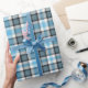 Plaid Tartan Blue White Pattern Wrapping Paper