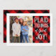 This fun photo holiday card features buffalo plaid and a creative play on words - "Plaid tidings of great joy!"