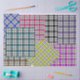 Colourful plaid tissue paper with blue, pink, purple, green black and white plaid. For gift wrapping, decoupage, or linings.