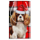 Dog lovers will adore receiving or giving this cute and funny holiday gift bag featuring a stylish Cavalier King Charles Spaniel dog in a Santa hat and festive red and green plaid pattern.