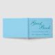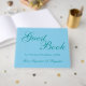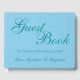 This elegant event guest book features the messages "Guest Book" and "Your Signature Is Requested", along with a customised date. The text is coloured dark cyan, and the background is coloured sky blue. A generic, customisable guestbook like this might be used at an event such as a funeral, a wedding, a birthday party, a baby shower, or some other event.