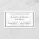 This basic business card design features a first and last name, a healthcare facility name, a profession title, and contact details that can be personalised. It also features a double-line black border. Business cards like these might be used by a professional such as a dentist or a surgeon.