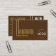 Make a lasting impression with this classic and simple business card design with modern yellow font & fine decor stripes, logo and (employees-) photo on a plain dark brown background.