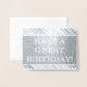 This custom silver foil birthday greeting card design features the message "HAVE A GREAT BIRTHDAY" on the front, along with a customisable message on the inside. It could be given to celebrate somebody’s birthday.