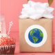 Plain white background contrasts the colourful geographic globe. Saturated blues and greens.