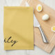 Plain gold script personalised tea towel