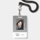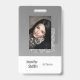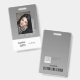 Name Badge featuring a gray colored ombre background, photo, barcode and logo template. Easily customize this badge to your brand. For additional customization easily drop me a message below. I would be more than happy to make your design wishes come true!