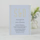 Perfect wedding invitation for the minimalists. This elegant soft blue invitation features a simple style with modern script in white, big gold monograms and golden foil frame. The text and monograms are easily customisable to make it all yours.